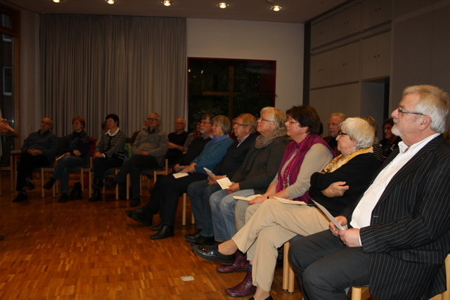 „Gott schuf nicht den Menschen ( Adam ), wie wir immer meinen, denn der Mensch ist immer nur weiblich und männlich zu haben,“ so Steins. Anhand einer sehr wörtlichen Übersetzung zeigte er auch die Stellung der Geschlechter auf, die gleichwertig geschaffen wurden, Im Laufe der Jahrhunderte wird sowohl durch die jüdische als auch durch die christliche Traditionslehre diese Gleichberechtigung von Mann und Frau aufgehoben. Eine Entwicklung , der dringend entgegen gesteuert werden muss. Und so bekommen auch viele andere Aussagen zum Verhältnis Gott Mensch, Mensch Natur, die Geschlechterrolle, die Sünde und das ewige Leben durch die intensive fachliche Betrachtung eine andere neue Sichtweise. Nach einer Gesprächsrunde, hätten sich die Teilnehmerinnen und Teilnehmer des Abends noch eine Fortsetzung gewünscht. „Vieles war mir neu und so hab ich das nie gesehen“ so eine Besucherin und ein anderer:“Ich glaube ich muss diese dramatischen Geschichten der Bibel doch mal ganz lesen“. Herr Himstedt verabschiedete Dr. Steins mit dem Dank aller Anwesenden und lud zu einem ganz kurzen Blick die Ausstellung Expedition Bibel ein, die am Sonntag offiziell um 11. Uhr eröffnet wird und „Lust auf Bibel“ machen soll.