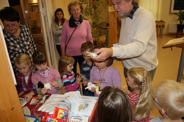 Besonders gut an kam bei den Kindern die Handpuppe „Ziege Micha“, geführt von Theologiestudentin Anna-Lena Himstedt, die im Erzählzelt biblische Geschichten vorgetragen hatte. Beliebt waren auch das Buffet aus Leckereien wie vor 2000 Jahren im Heiligen Land, sowie die Führungen. Wolfgang Flohre kann sich eine Neuauflage der Ausstellung, die von der Diözese Linz aus Österreich zur Verfügung gestellt wurde, gut vorstellen: „Die Bibel ist nicht einfach nur ein altes Buch. Hier in Ibbenbüren ist sie in den vergangenen zwei Wochen mit all ihren wichtigen Botschaften von Gottes Liebe ganz konkret zum Leben erwacht.“